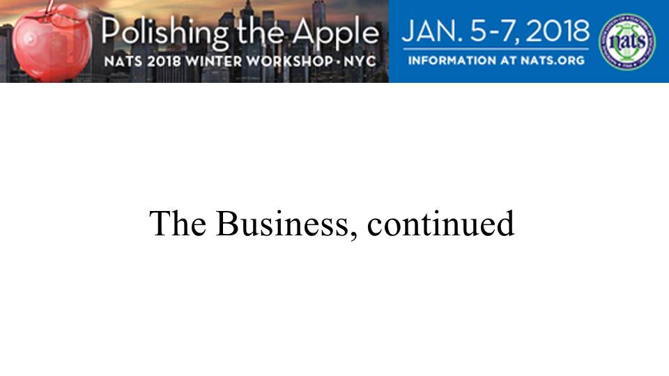 2018 NATS Winter Workshop, "Polishing the Apple"